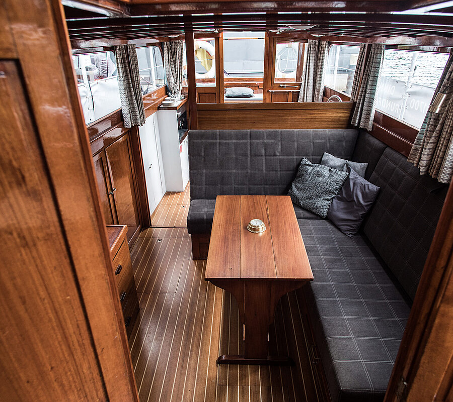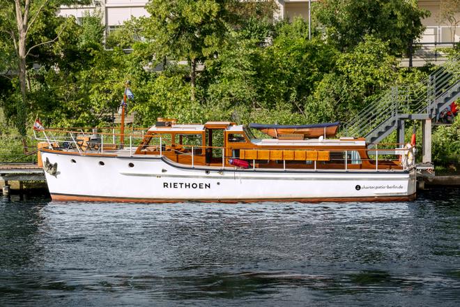 Die besondere Ausstrahlung der RIETHOEN prägen die original erhaltenen Holzaufbauten von 1938. Gebaut wurde das Schiff von der Werft Royal van Lent und später mit viel Sorgfalt restauriert. Teakholz und die erhaltene Bauweise geben der RIETHOEN den Charakter einer klassischen Motoryacht mit dem Flair eines historischen Salonschiffs. Auch als Eventlocation am Wasser eignet sich die RIETHOEN gut für kleine Gruppen.