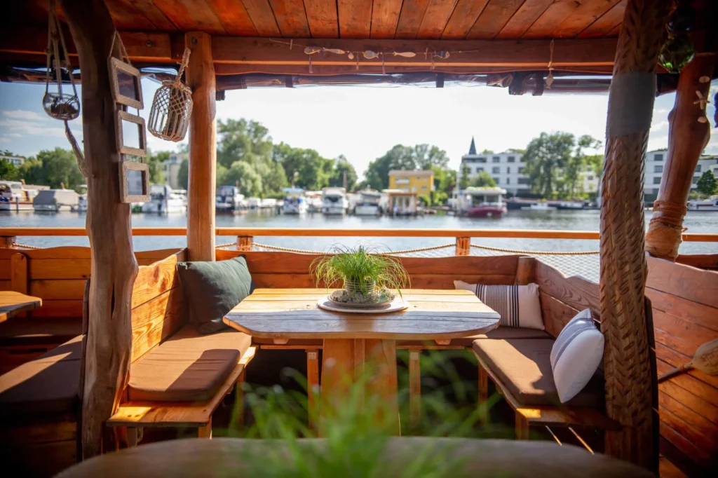 Das Hauptstadtfloß I bietet Platz für bis zu 35 Personen, alle 35 Sitzplätze sind überdacht. Dazu kommen ein Sonnendeck und eine Ausstattung, die entspannte Stunden auf dem Wasser angenehm macht. Buchbar ist das Floß von April bis Oktober. Wer ein Boot mieten möchte und eine besondere Atmosphäre an Bord sucht, findet hier einen Rahmen, der sich klar von klassischen Eventbooten abhebt.