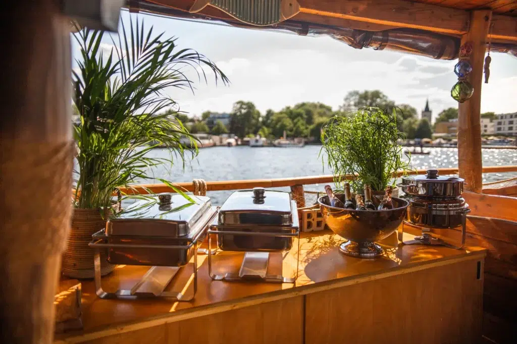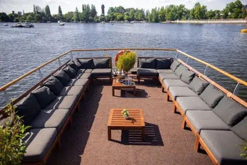 Die Fahrten können je nach Anlass als Spree Rundfahrt durch die Stadt oder als sommerlicher Ausflug ins Grüne geplant werden, zum Beispiel ab der Oberbaumbrücke. Auf Wunsch lassen sich Catering, vorgekühlte Getränke, BBQ, DJ oder ein Sightseeing-Guide ergänzen. Auch individuelle Dekorationen, verschiedene Catering-Pakete und weitere Extras sind möglich. Für Firmenevents können zudem Branding-Möglichkeiten umgesetzt werden. Wer ein gemütliches Grillboot oder ein kleineres Partyboot mit eigenem Charakter sucht, findet mit dem Hauptstadtfloß I eine passende Option.