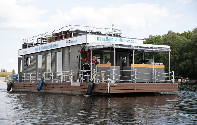 Das Loungefloß III bietet Platz für bis zu 24 Personen und eignet sich besonders für Gruppen ab 12 Personen. Alle Sitzplätze sind überdacht, dazu kommen ein Sonnendeck, ein beheizbarer Salon, WC und ein Tresen- und Barbereich mit Zapfanlage. Wer ein Boot in Berlin mieten möchte und dabei Wert auf Komfort, Atmosphäre und einen klaren Rahmen für gemeinsame Stunden an Bord legt, findet hier eine passende Möglichkeit für einen stilvollen Bootsausflug in Berlin, eine besondere Feier oder eine entspannte Fahrt auf dem Wasser. Buchbar ist das Loungefloß III von April bis Oktober und bietet einen stilvollen Rahmen zu fairen Konditionen.